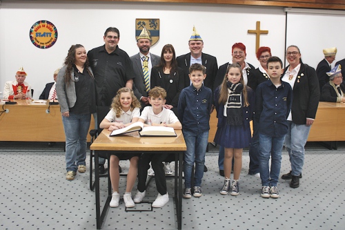 Verewigt zum Sessionsstart: Auch ein Eintrag ins städtische Gästebuch markierte für die designierten Alsdorfer Narrenherrscher den Beginn der jecken Jahreszeit.