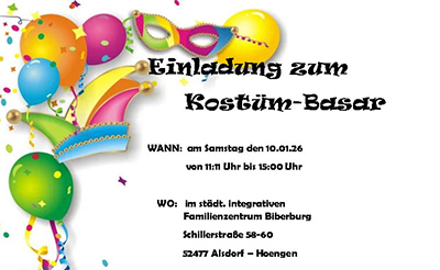 Karnevals-Kostüm-Basar im Familienzentrum Biberburg. Spenden sind willkommen.