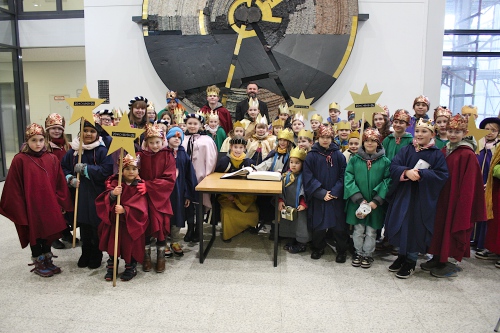 Sie sind erneut mit ihren Spendenbüchsen fleißig unterwegs, um Kindern in ärmeren Regionen der Welt zu helfen: Auch in Alsdorf haben sich zahlreiche Kinder an der Sternsingeraktion beteiligt. Jetzt wurden ihre Spendendosen auch bei einem Besuch im Rathaus gefüllt. Dort erinnerte sich Bürgermeister Tim Krämer gerne an die eigene Zeit als Sternsinger und dankte den Kindern aus den Pfarreien St. Castor und Johannes XXIII. dafür, „dass diese wichtige Tradition und diese wertvolle Hilfe auch dank euch bis heute jährlich fortgeführt werden“. Mit ihren Unterschriften verewigten sich die Kinder im Gästebuch der Stadt Alsdorf, bevor sie beim Rundgang durch das Rathaus weitere Spenden sammelten. Der Erlös der diesjährigen Sternsingeraktion kommt unter dem Motto „Schule statt Fabrik – Sternsingen gegen Kinderarbeit“ vor allem Hilfsprojekten in Bangladesh, aber auch weltweit zugute.